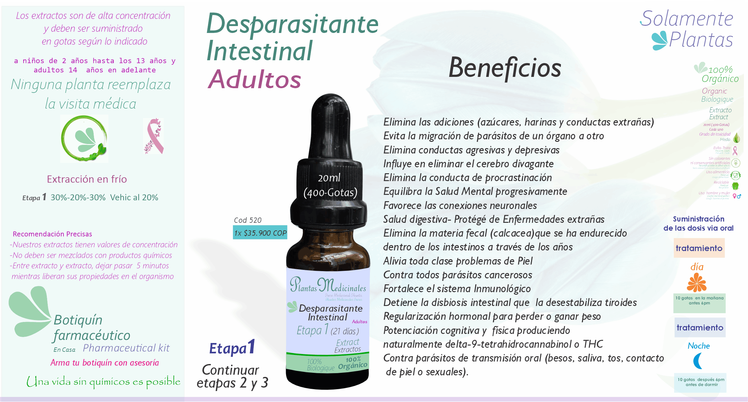 Beneficios: Elimina y remueve par?sitos causantes diferentes enfermedades degenerativas como el c?ncer. Elimina alergias, hongos, virus, amebas, bacterias de la piel. Elimina toxinas, micro pl?sticos y metales pesados adquiridos por alimentos, por cosm?ticos, productos de aseo, por alta exposici?n qu?mica y transmisi?n sexual (oral)